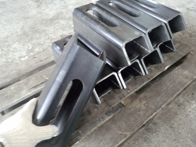 STKR400 t9.0x100x100 角パイプに長穴貫通切断と開先切断しました